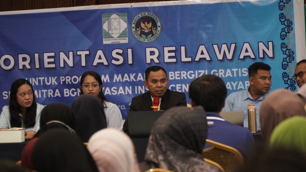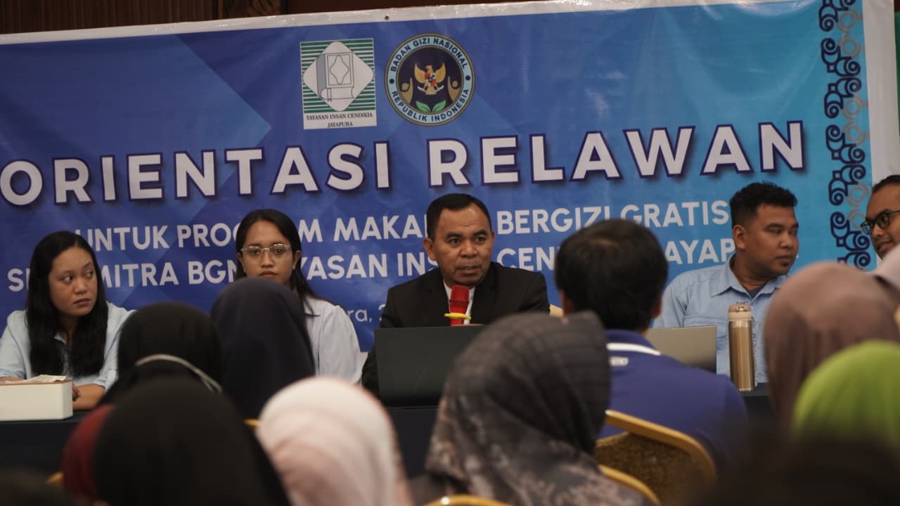 Jayapura — Yayasan Insan Cendikia Jayapura (YICJ) menggelar kegiatan Orientasi Relawan Program Makan Bergizi Gratis (MBG) Mitra Badan Gizi Nasional (BGN) pada Rabu (25/3/2026) bertempat di Cendikia Ballroom. Kegiatan ini diikuti oleh 167 relawan dari lima dapur SPPG, yaitu Wabu 1, Hinekombe 3, Dobonsolo, Yobeh/Ifar Besar, dan Sentani Kota.
