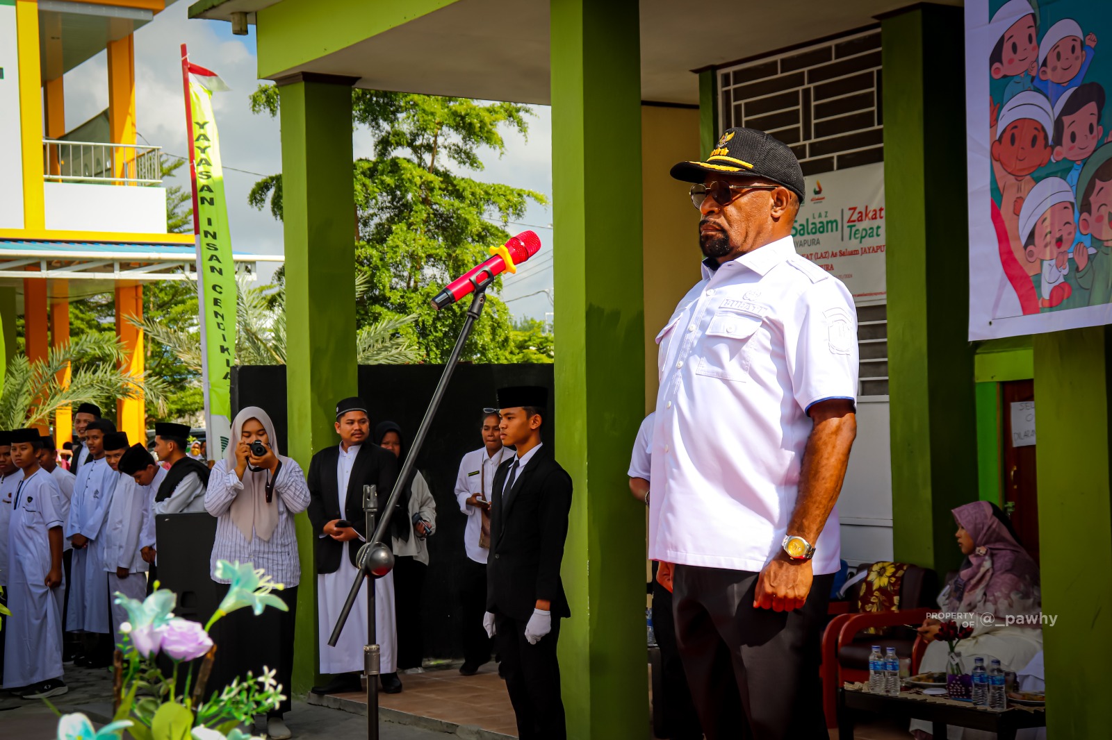 Upacara ini dihadiri oleh Bupati Kabupaten Jayapura, Dr. Yunus Wonda, S.H., M.H., Sekretaris Daerah Kabupaten Jayapura, Kepala Kantor Kementerian Agama Kabupaten Jayapura, serta para anggota legislatif yang turut memberikan dukungan dan semangat kepada para santri, yakni Anggota DPRD Kabupaten Jayapura Abdul Gani Fattah dan Muh. Akbar, S.E., serta Anggota DPRP Papua Wagus Hidayat, S.H., M.Sos.